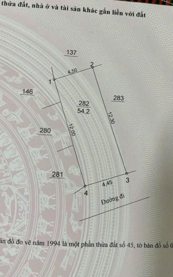 Diện tích: 54m² – đất vuông vắn, nở hậu nhẹ